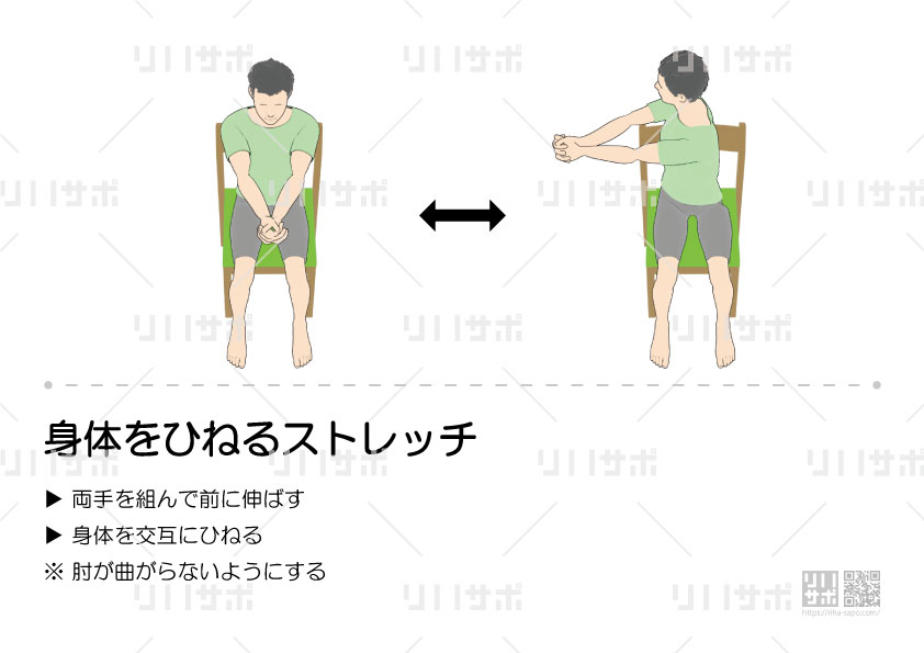 体幹回旋、広背筋、僧帽筋、外腹斜筋、内腹斜筋、脊柱起立筋(最長筋、腸肋筋)